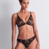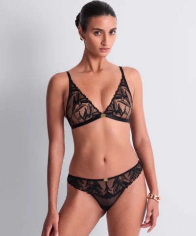 Aubade’s Sweet Euphoria Triangle Bralette epitomises understated elegance with its triangle silhouette and sheer tulle construction. Delicate floral embroidery adorns the piece, creating visual interest whilst maintaining a refined aesthetic. The non-wired, non-padded design offers natural support and comfort, making it ideal for layering or wearing beneath sheer garments. This plunge-cut style flatters various body shapes whilst the intricate embellishment elevates everyday wear to something distinctly luxurious. A sophisticated choice for those seeking comfort without compromising on style.
