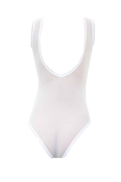 Whether you are a bride or not, this is a show-stopper, one of a kind piece. Sheer unlined embroidered tulle with 3D flowers, crystals and sequins, this bodysuit is specially composed with stretch mesh low scoop back for that perfect fit. Adjustable hook and eye and crotch lined in 100% cotton.