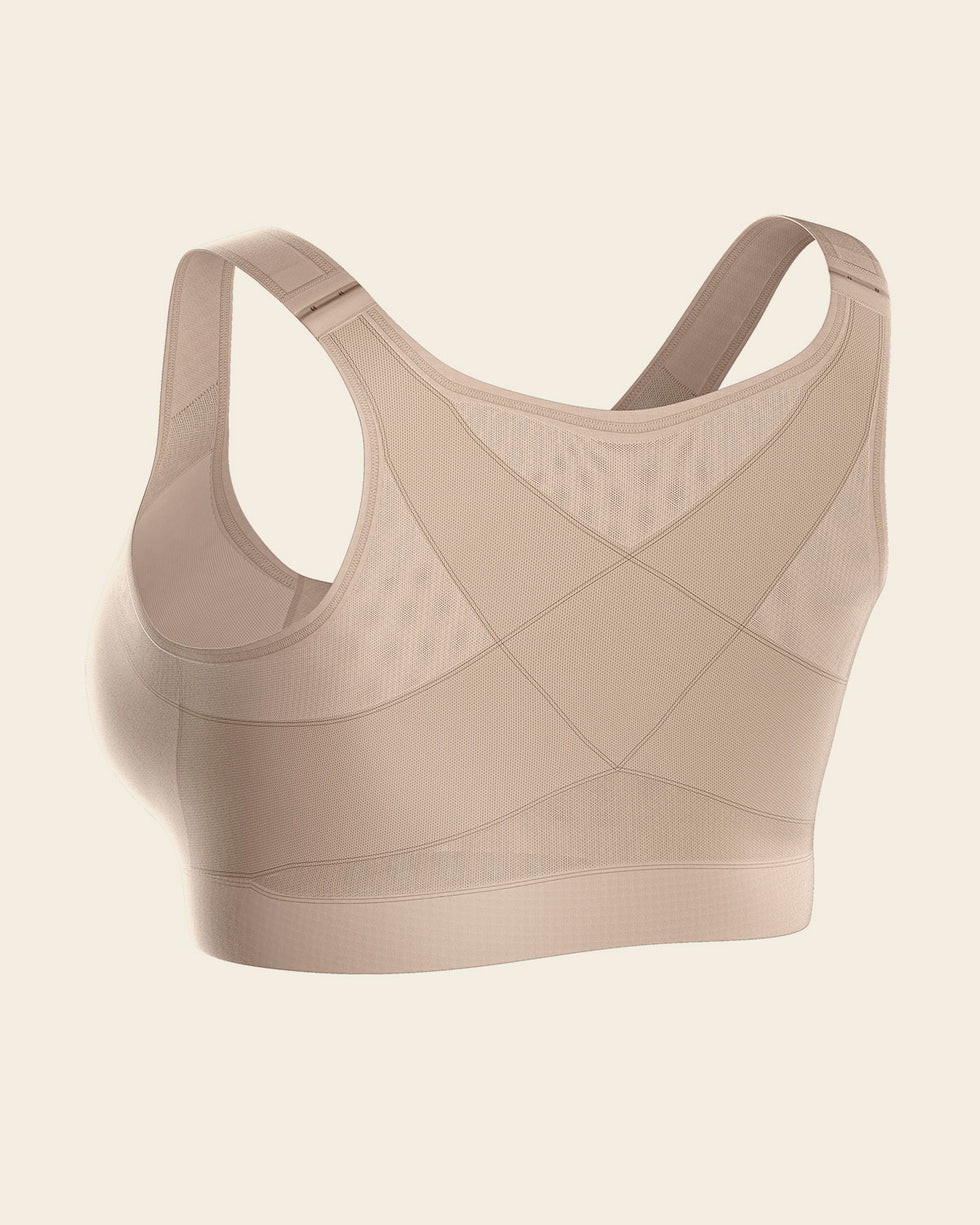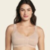 This incredible bra gives you back support and offers a gentle minimizing effect. It features criss-cross PowerSlim® bands to improve your posture. Double-layered DuraFit® fabric cups offer support without adding volume. Ultra-soft seams let you move freely and stay comfortable no matter what. This bra’s wide elastic underbust band gives you the support you need to work out, play your favorite sports, or do any other activities. A front hook-and-eye closure allows for easy wear. Soft, padded, adjustable straps are designed for support and comfort. This bra is also doctor recommended for post-surgical recovery.