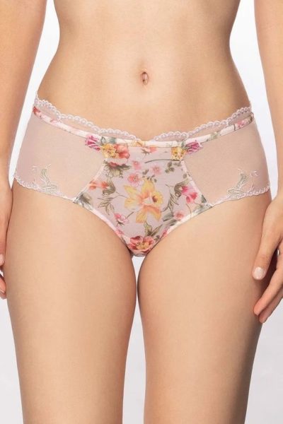 Désir en Fleur shorty, sensual and soft over pink background follows the curves and provides an irresistible appeal.