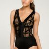 Serie and its geometric look is very seductive. This line combines embroidery with lines imitating leather straps with chevron and wave motifs assembled in a two-way stretch satin mesh.