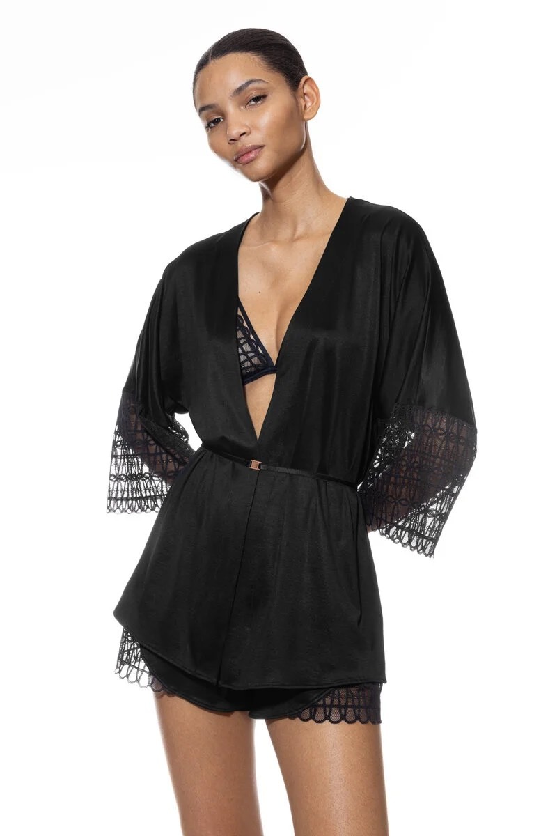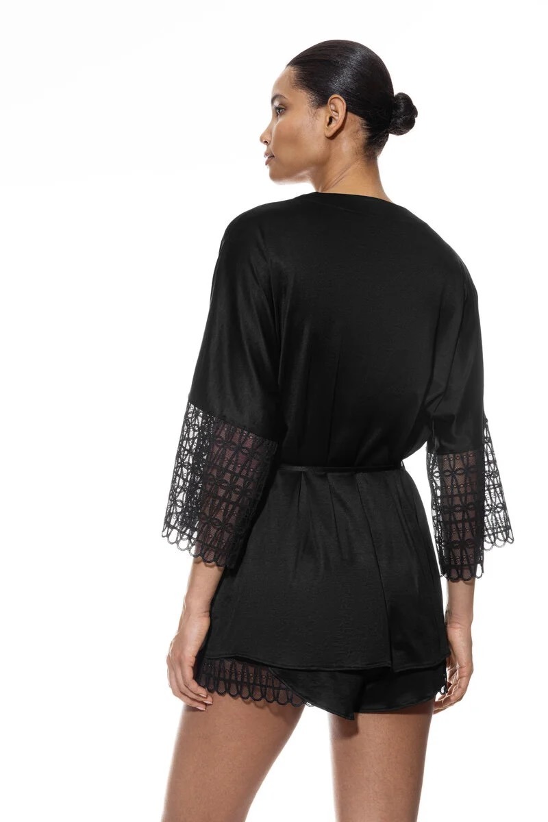 Our kimono in black from the Temptation series is an absolute must-have. Elegant, timeless and exclusive – that’s the Temptation high-fashion range. Thanks to a carefully balanced blend of 57% viscose, 38% cotton and 5% elastane, the kimono feels extremely comfortable against the skin. At mey, we are consistently investing in first-class quality, and use our expertise in underwear design to ensure the perfect fit. Also cute as a jacket!