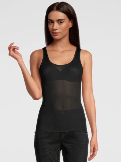 Tank Top made of a delicate fine ribbed knit fabric in pure silk organza with elegant satin edging. Super-soft touch and no side seams construction for the ultimate in comfort. Featuring a trendy scooped neckline allowing multiple daily use as pure underwear or under-jacket.