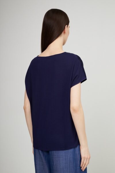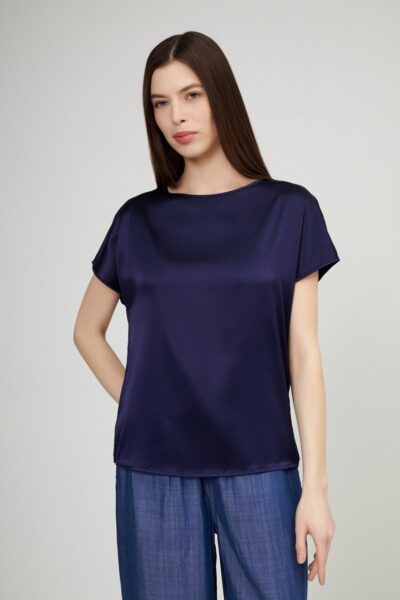 Silk and Modal kimono sleeve top. Loose fit with a boat neckline.
