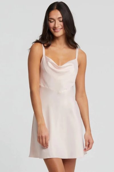 Feel comfortable while looking elegant in the sophisticated silhouette of the Heavenly Chemise. This cowl-neck chemise offers adjustable straps for customizable fit and is perfect for nights of self-love or nights of love-sharing. Details: