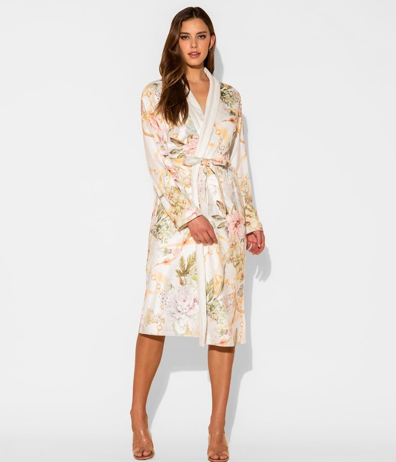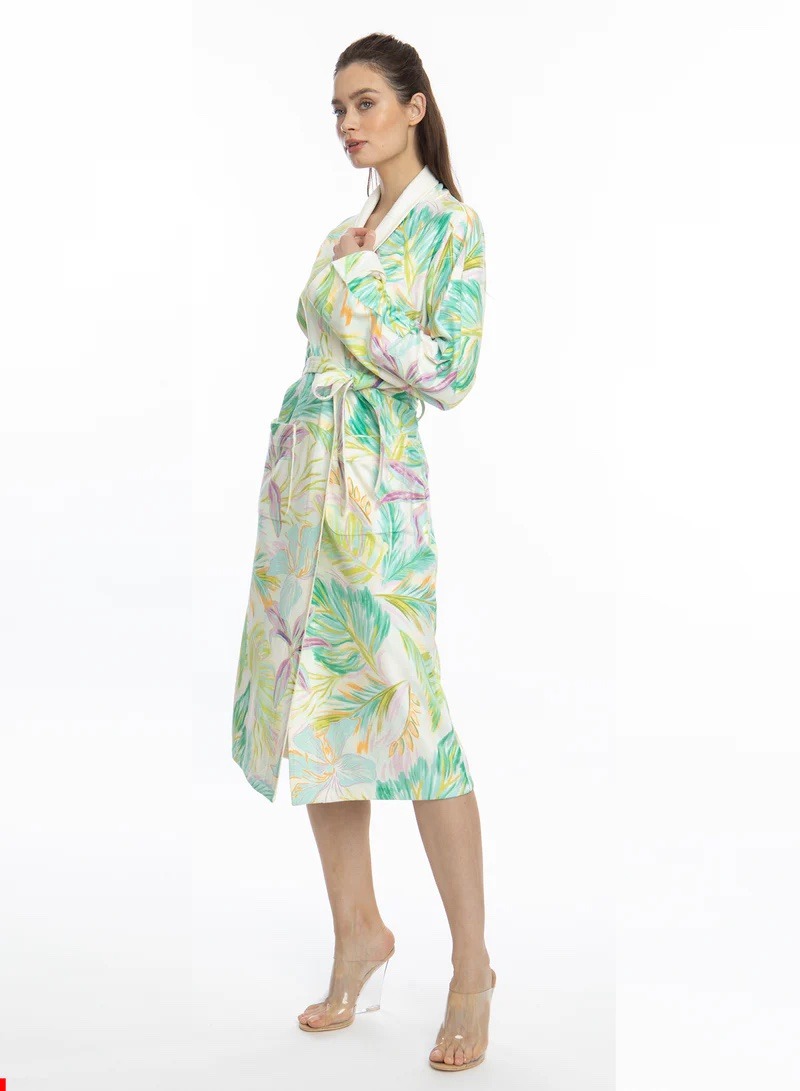 Slip into luxury with this elegant robe. Designed with an elegant, fitted silhouette, this robe offers a flattering shape without any bulk, making it perfect for lounging or post-shower comfort. Its lightweight fabric feels gentle and breathable, ensuring you stay cozy while looking effortlessly chic.